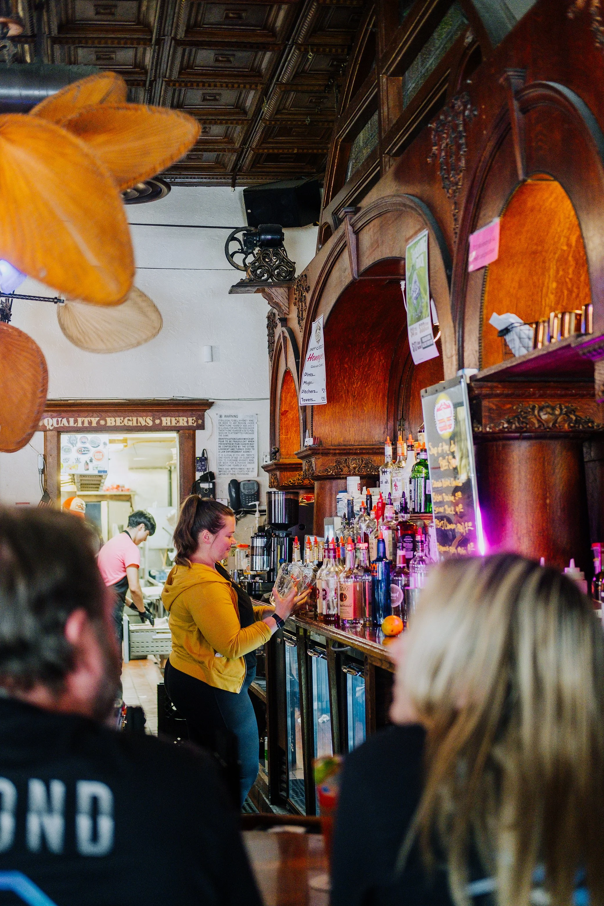 We’re proud to honor the history of this remarkable building. Throughout the restaurant you’ll see historic photos and artwork from the Old Colorado City Library and History Center, along with original architectural elements that give the space its character. A few legendary Meadow Muffins relics remain as well—including the Casablanca fan above the front bar and the mysterious portrait in Bloody Mary’s Back Bar that longtime locals still love to talk about.